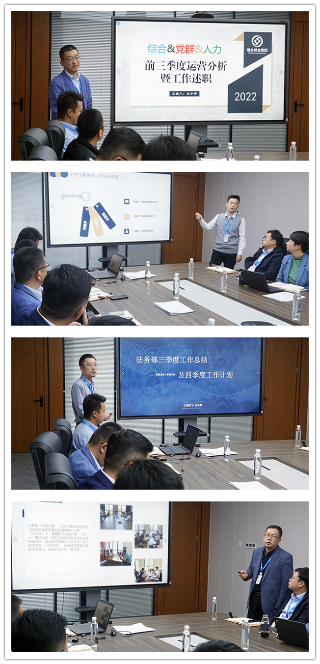 10月17日,煙臺財金集團召開2022年前三季度運營分析會議,總結(jié)回顧集團各單位前三季度業(yè)務(wù)開展情況,分析經(jīng)營形勢、成效及存在問題,安排部署四季度重點工作,吹響奮力沖刺年度目標(biāo)任務(wù)的沖鋒號。集團領(lǐng)導(dǎo)班子、外部董事及各單位干部職工代表共計30余人參會。