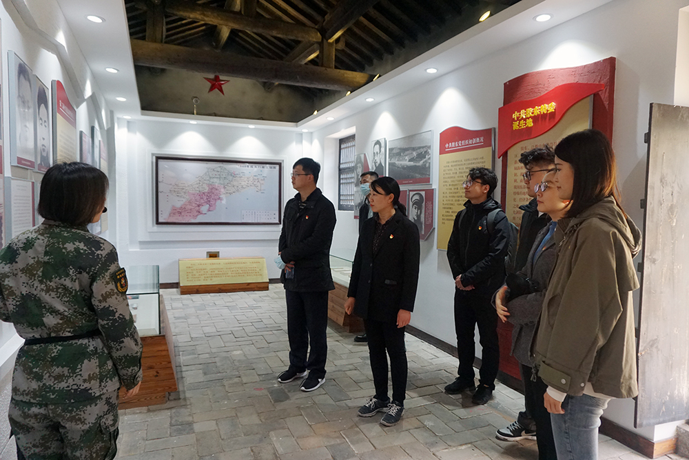 在昆崳山革命紀念館門前,全體黨員排列整齊,莊嚴肅立,在領(lǐng)誓人的帶領(lǐng)下,大家一起重溫了入黨誓詞。隨后,跟隨昆崳山紅色教育基地講解員,一同進入紀念館參觀學習。透過陳列著革命老物件和珍貴照片,大家了解到中共膠東特委誕生,膠東人民革命武裝發(fā)祥,膠東人民兵工發(fā)源,昆崳山駐軍相關(guān)戰(zhàn)斗和建設(shè)的歷程,看到了以于得水為首一批共產(chǎn)黨人領(lǐng)導了的“一一?四”武裝暴動,開啟了昆崳山游擊戰(zhàn),山東人民抗日救國、膠東革命武裝等革命斗爭。大家認真聆聽講解,無不為英雄們偉大的革命精神所感動。