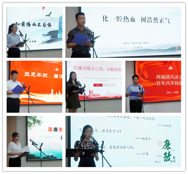 本次比賽共有來自集團(tuán)各部室、子公司7名員工參加,依次通過PPT、短視頻等形式,引經(jīng)據(jù)典,以學(xué)倡廉,以文育廉。通過古今對話、正反對比弘揚清廉之風(fēng),筑牢思想防線,嚴(yán)守法紀(jì)底線。演講結(jié)束后,參會領(lǐng)導(dǎo)當(dāng)場評分并為獲獎?wù)哳C獎。